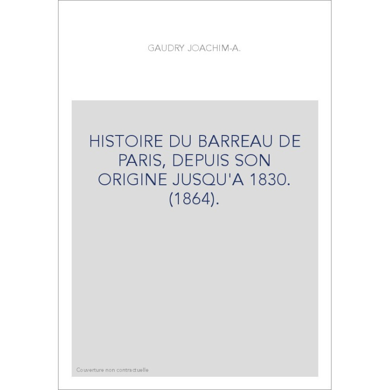 HISTOIRE DU BARREAU DE PARIS, DEPUIS SON ORIGINE JUSQU'A 1830. (1864).