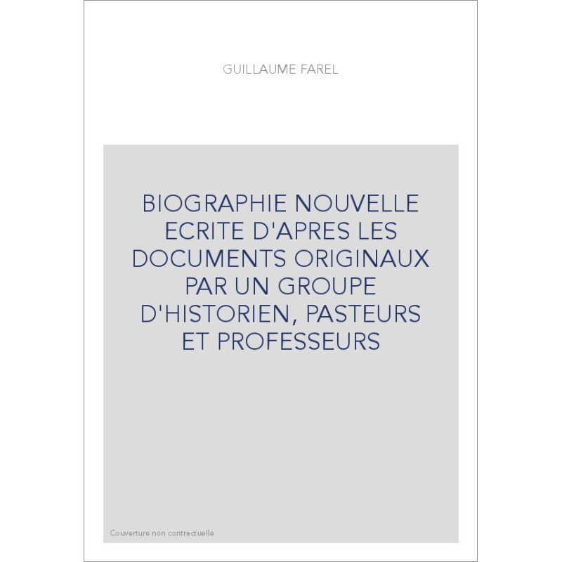 BIOGRAPHIE NOUVELLE ECRITE D'APRES LES DOCUMENTS ORIGINAUX PAR UN GROUPE D'HISTORIEN, PASTEURS ET PROFESSEURS