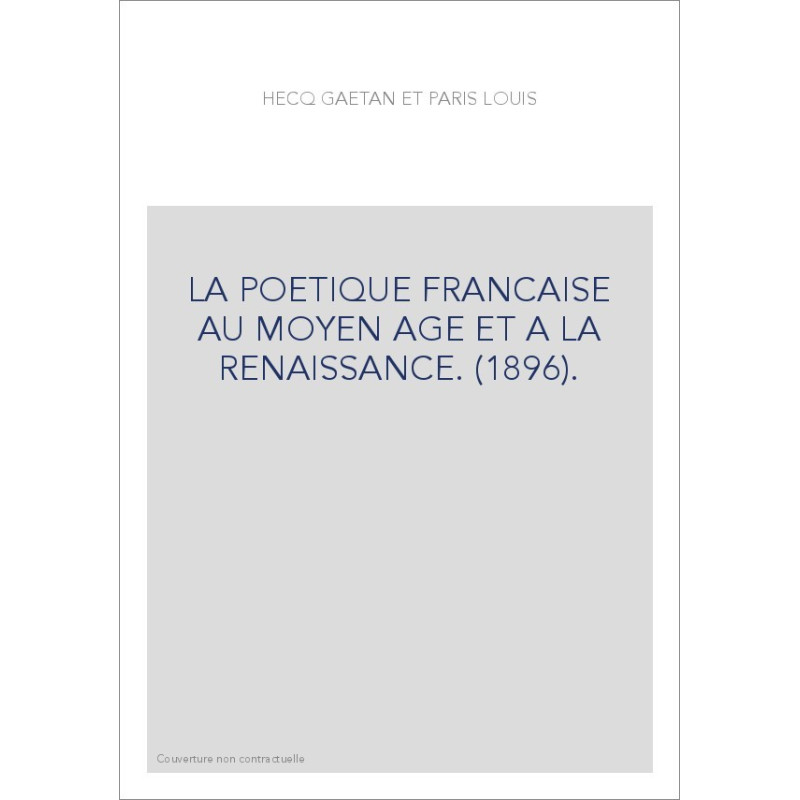 LA POETIQUE FRANCAISE AU MOYEN AGE ET A LA RENAISSANCE. (1896).