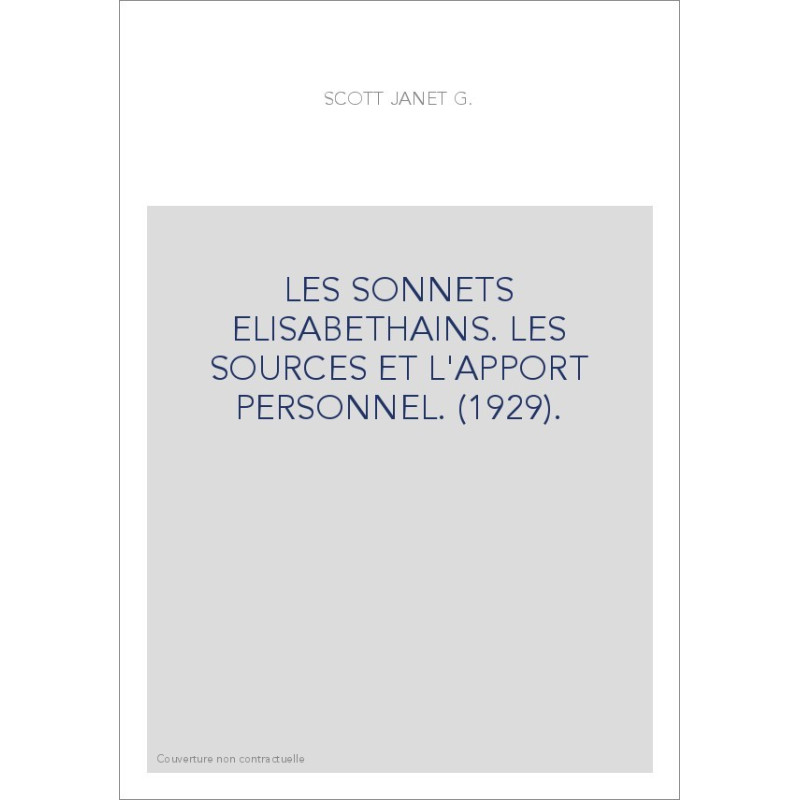 LES SONNETS ELISABETHAINS. LES SOURCES ET L'APPORT PERSONNEL. (1929).