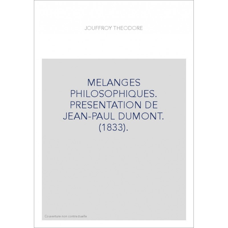 MELANGES PHILOSOPHIQUES. PRESENTATION DE JEAN-PAUL DUMONT. (1833).