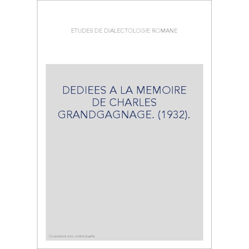 ETUDES DE DIALECTOLOGIE ROMANE DEDIEES A LA MEMOIRE DE CHARLES GRANDGAGNAGE. (1932).