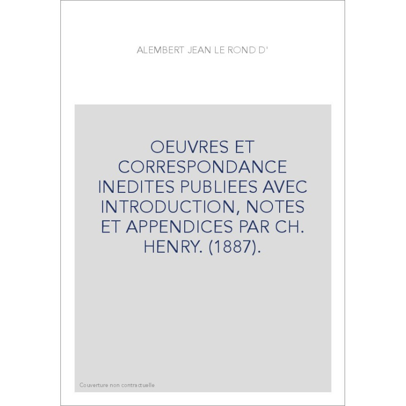 OEUVRES ET CORRESPONDANCE INEDITES PUBLIEES AVEC INTRODUCTION, NOTES ET APPENDICES PAR CH. HENRY. (1887).