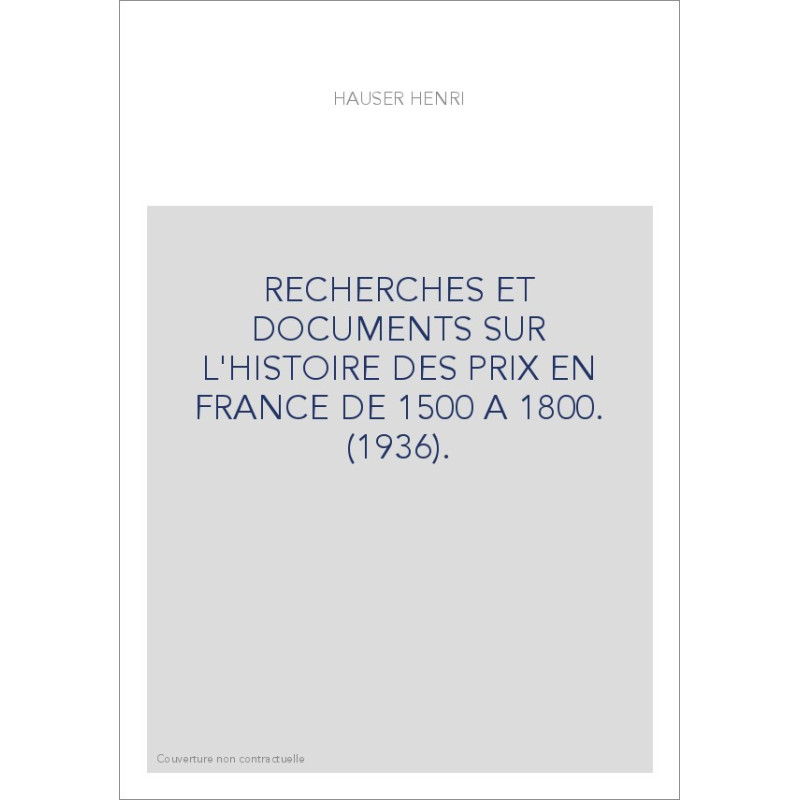 RECHERCHES ET DOCUMENTS SUR L'HISTOIRE DES PRIX EN FRANCE DE 1500 A 1800. (1936).