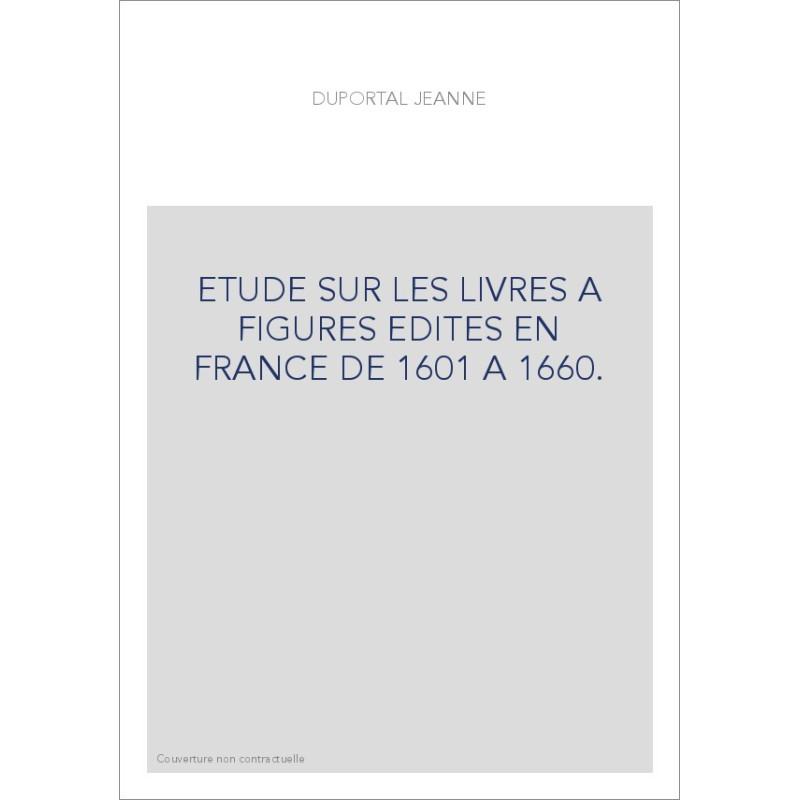 ETUDE SUR LES LIVRES A FIGURES EDITES EN FRANCE DE 1601 A 1660.