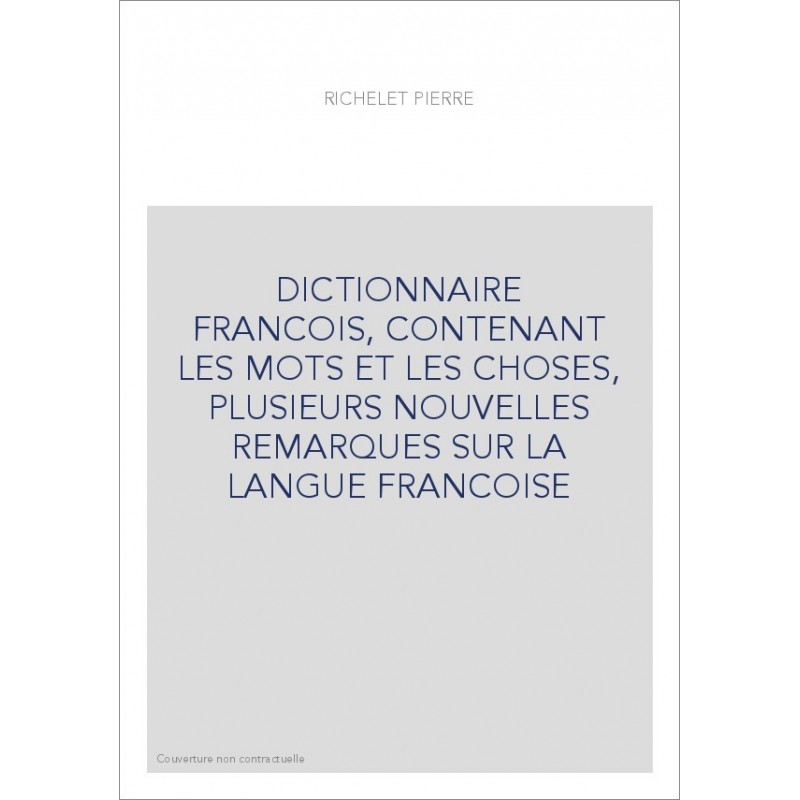 DICTIONNAIRE FRANCOIS, CONTENANT LES MOTS ET LES CHOSES, PLUSIEURS NOUVELLES REMARQUES SUR LA LANGUE