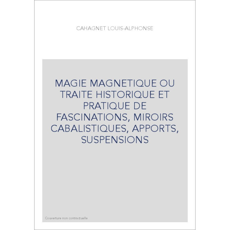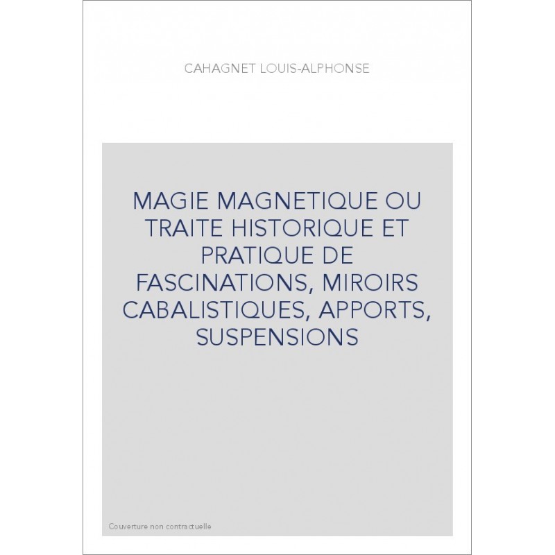 MAGIE MAGNETIQUE OU TRAITE HISTORIQUE ET PRATIQUE DE FASCINATIONS, MIROIRS CABALISTIQUES, APPORTS, SUSPENSIONS