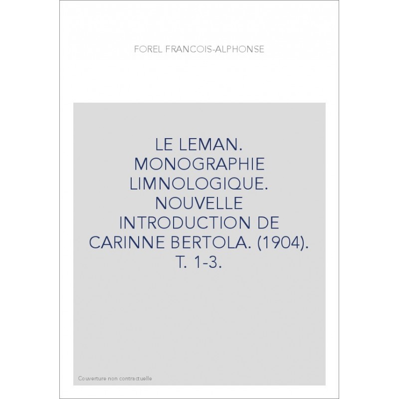 LE LEMAN. MONOGRAPHIE LIMNOLOGIQUE. NOUVELLE INTRODUCTION DE CARINNE BERTOLA. (1904). T. 1-3.