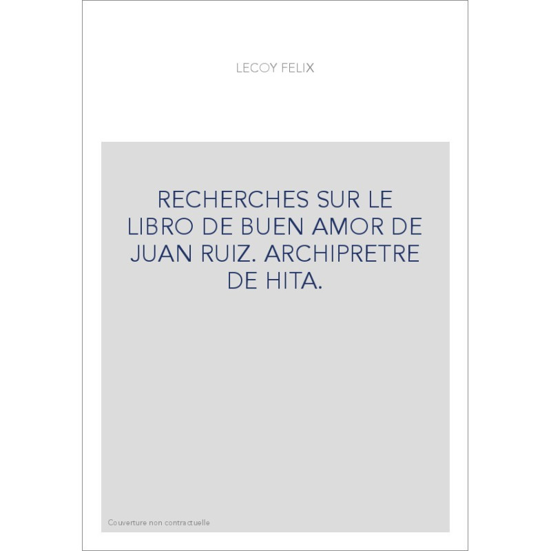 RECHERCHES SUR LE LIBRO DE BUEN AMOR DE JUAN RUIZ. ARCHIPRETRE DE HITA.