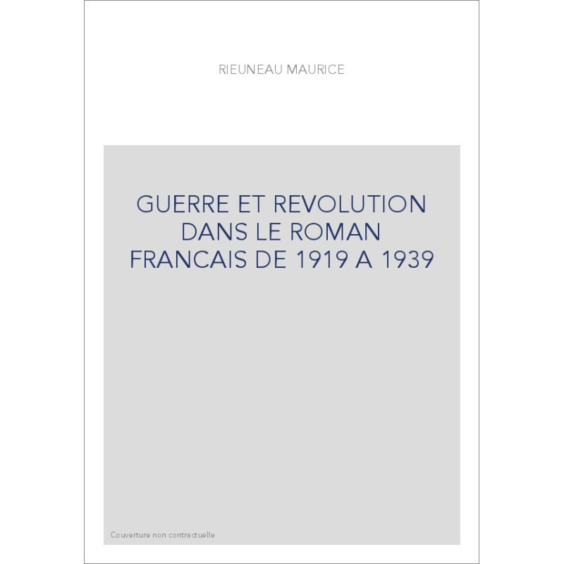 GUERRE ET REVOLUTION DANS LE ROMAN FRANCAIS DE 1919 A 1939