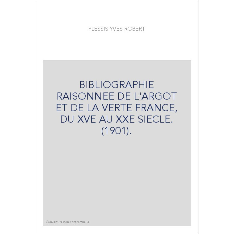 BIBLIOGRAPHIE RAISONNEE DE L'ARGOT ET DE LA VERTE EN FRANCE, DU XVE AU XXE SIECLE. (1901).