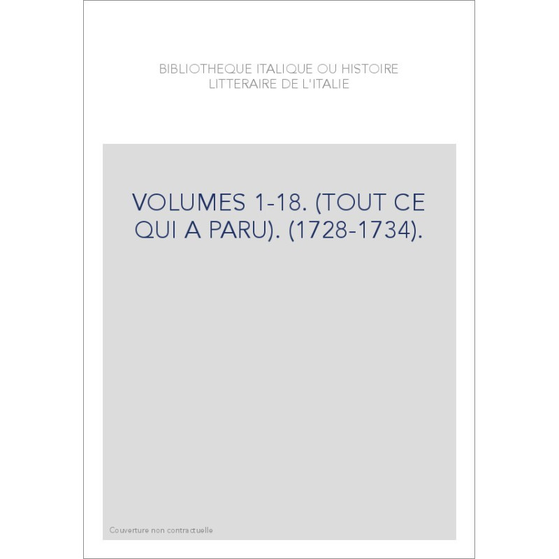 BIBLIOTHEQUE ITALIQUE OU HISTOIRE LITTERAIRE DE L'ITALIE VOLUMES 1 A 18