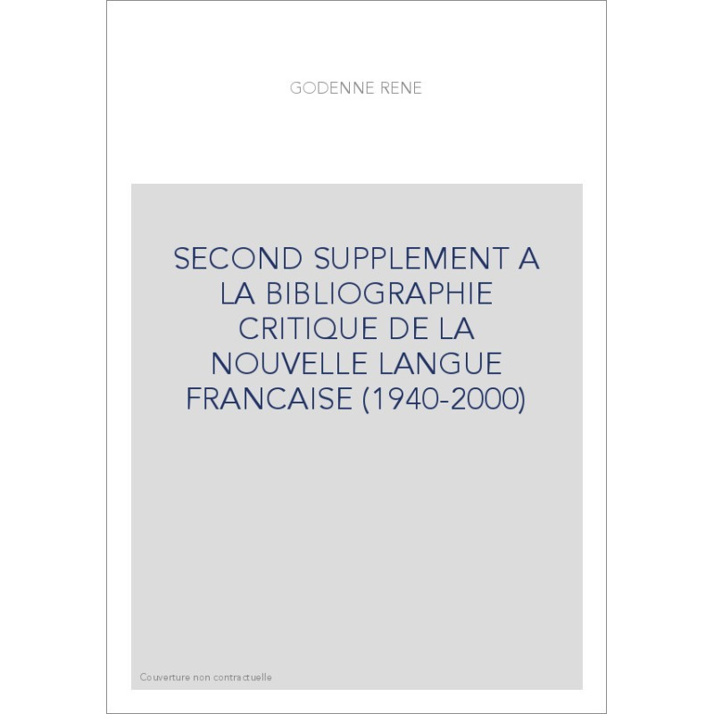 SECOND SUPPLEMENT A LA "BIBLIOGRAPHIE CRITIQUE DE LA NOUVELLE LANGUE FRANçAISE" (1940-2000)
