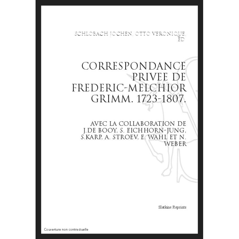 Le titre du présent volume pourrait être plus exactement : correspondance privée partielle- ment inédite. De fait, plusieurs fragments des lettres à François Tronchin ont été publiés à la fin du XIXe siècle ; d'autres à Vergennes l'ont été en Russie, par Sergueï Karp, avec l'accord de Jochen Schlobach. Lui-même, avec la collaboration de Silvia Eichhorn-Jung, avait procuré l'édition allemande des lettres de Grimm à Gottsched. Par ailleurs, son intention n'a jamais été de publier lui-même l'intégralité de la correspondance inédite de Grimm. A elles seules les lettres retrouvées à l'Est (surtout en Russie) constituent un massif épistolaire considérable. Ainsi la seule correspondance avec CatherineII, préparée par Sergueï Karp et ses collaborateurs, est prévue en cinq volumes. Quant à l'inventaire des papiers de Grimm conservés en Russie, dû à Alexandre Stroev, il fournit avec ses annexes la matière d'un volume conséquent. Seule exception à cette règle d'écarter les lettres échangées avec l'est européen, la correspondance avec le dernier roi de Pologne, conservée à Varsovie, est éditée pour la première fois dans notre volume. Le lecteur doit donc comprendre qu'il est seulement en présence d'une étape, certes très importante, de l'héritage épistolaire de Grimm dont on n'avait jusqu'à récemment mal mesurée l'ampleur. Une dernière précision : le travail d'édition du présent volume était achevé au moment de la disparition brutale de son maître d'œuvre, Jochen Schlobach. On ne s'étonnera donc pas de l'absence d'une mise à jour systématique de la bibliographie, en particulier de références à la nouvelle édition de la Correspondance littéraire, commencée par les soins du Centre International d'Étude du XVIIIe Siècle de Ferney-Voltaire.