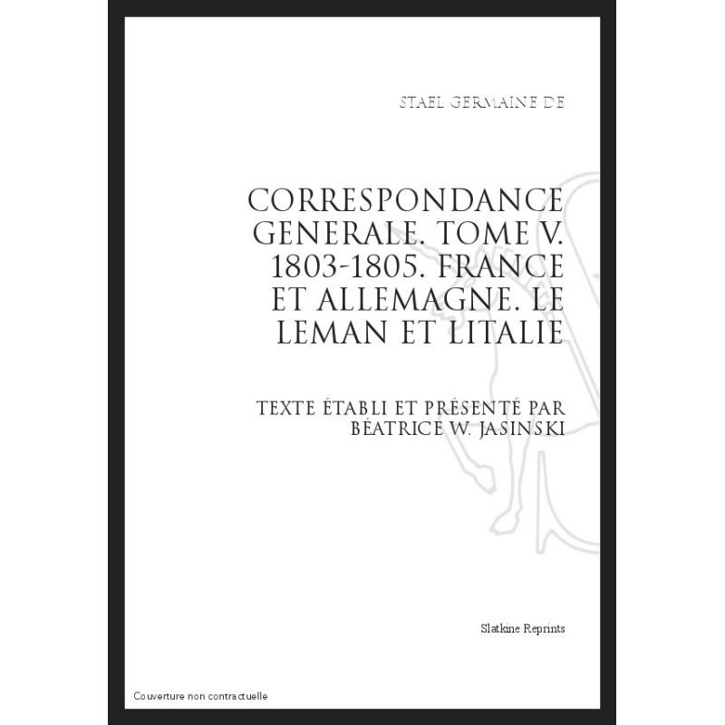 CORRESPONDANCE GENERALE T5 : FRANCE ET ALLEMAGNE. LE LEMAN ET L'ITALIE. 1803-1805