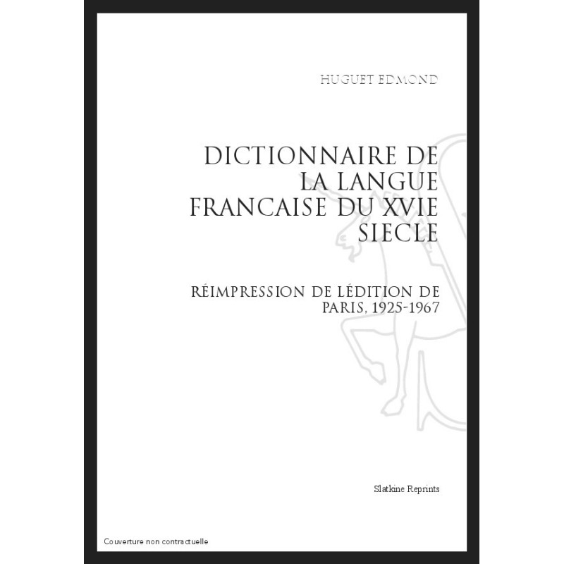 Au même titre que le Dictionnaire de l'ancienne langue française de Godefroy, le Dictionnaire de la langue française du seizième siècle d'Edmond Huguet, épuisé depuis de nombreuses années, se doit de figurer dans toutes les bibliothèques consacrées aux études françaises modernes. Edmond Huguet ne s'est pas enfermé pour réaliser son dictionnaire, entre les deux dates extrêmes du XVIe siècle. Il est souvent remonté jusqu'au XVe, et est entré à chaque instant dans le XVIIe. Brantôme, Etienne Pasquier, Guillaume Du Vair, Agrippa d'Aubigné, morts sous Louis XIII, sont bien pourtant, par leur esprit comme par leur langue, des écrivains du XVIe siècle, et Edmond Huguet les a inclus dans la liste des œuvres qui ont fourni les matériaux de ce dictionnaire. Les mots qu'on trouvera dans ce dictionnaire sont d'abord ceux qui, employés au XVIe siècle, ont cessé de l'être depuis. Ils sont très nombreux. Une large place est occupée par les mots d'emprunt qui, après un séjour plus ou moins long dans notre langue, en ont été exclus. Les deux sources les plus abondantes étant le latin et l'italien. Le dictionnaire fait aussi une large place aux locutions proverbiales et figurées qui se sont perdues. À côté des termes et des locutions qui n'existent plus, Edmond Huguet fait la part belle à tous les mots qui ont changé de sens, ainsi qu'aux mots qui avaient, au XVIe siècle, un sens plus large que de nos jours. Quant aux mots qui sont toujours vivants aujourd'hui, et dont le sens n'a pas varié depuis le XVIe siècle, Huguet les cite, en notant leur emploi à une date antérieure à celle que l'on indique ordinairement. Il prend en général pour point de comparaison le Dictionnaire de Hatzfeld, Darmesteter et Thomas, précieux quand on veut être informé de l'ancienneté d'un mot. Le nombre cité d'exemple est d'une richesse extraordinaire, souvent beaucoup plus grande qu'il n'en fallait pour déterminer le sens des mots. Le but de l'auteur n'a pas été seulement d'expliquer : il a voulu fournir aux historiens de la langue et aux chercheurs des