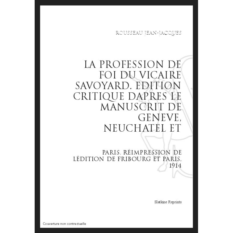 LA PROFESSION DE FOI DU VICAIRE SAVOYARD ÉDITION CRITIQUE D'APRÈS MANUSCRITS GENÈVE, NEUCHÂTEL, PARIS
