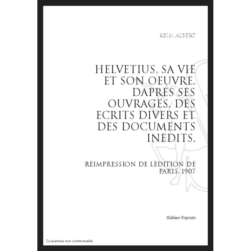 HELVETIUS, SA VIE ET SON OEUVRE D'APRES SES OUVRAGES, DES ECRITS DIVERS ET DES DOCUMENTS INEDITS