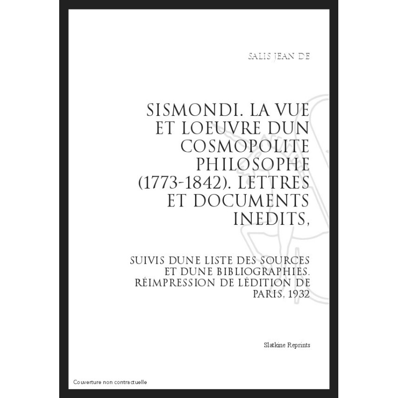 L`ouvrage de Jean de Salis, republié à l`occasion du bicentenaire de la naissance de Sismondi, reste à ce jour la meilleure étude d`ensemble sur la vie et l`œuvre de ce semeur d`idées, de cet initiateur et de ce novateur dont les travaux ont fait longtemps l`objet des commentaires de ses contemporains. L`œuvre de Sismondi (1773-1842) est, à proprement parler, une longue paraphrase de l`Esprit des lois, dans l`acceptation la plus large de ce terme. L`apprentissage commercial de Sismondi, son expérience d`agronome, son activité dans le cadre d`une chambre de commerce et d`industrie, l`exercice d`un mandat parlementaire dans sa petite patrie (la Suisse), une riche information, des vues profondes lui ont conféré une autorité indéniable, à une époque qui mit à l`épreuve les meilleurs esprits que comptait alors l`Europe. L`action que l`auteur de l`Histoire des Français a eue sur le développement de l`historiographie en France, dans la première moitié du XIXe siècle, a été d`autre-part considérable. Le premier volume comprend la biographie proprement dite, l`étude du milieu, notamment Mme de Staël et son groupe, l`analyse des oeuvres principales, notamment historiques, philosophiques, économiques et sociales. Le second volume apporte le texte des lettres et de documents inédits, et donne une liste des sources et une bibliographie de tout premier ordre.