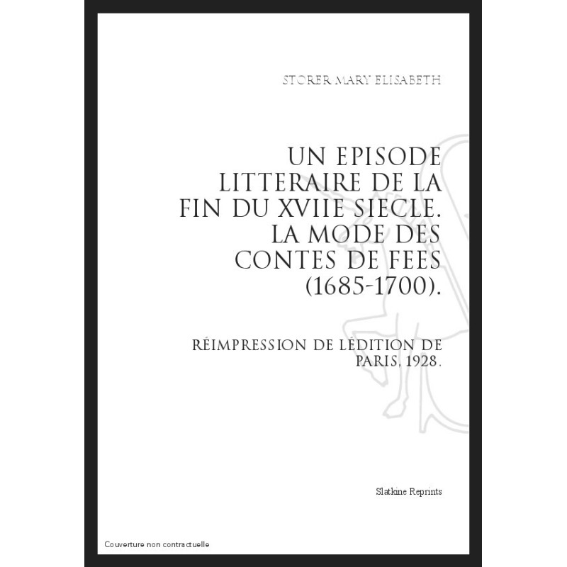 UN EPISODE LITTERAIRE DE LA FIN DU XVIIE SIECLE LA MODE DES CONTES DE FEES (1685-1700)