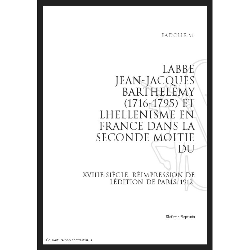 L'ABBE JEAN-JACQUES BARTHELEMY (1716-1795) ET L'HELLENISME EN FRANCE DANS LA SECONDE MOITIE DU XVIIIE