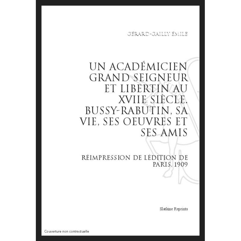 UN ACADÉMICIEN GRAND SEIGNEUR ET LIBERTIN AU XVIIE SIÈCLE : BUSSY-RABUTIN, SA VIE, SES OEUVRES ET SES AMIS