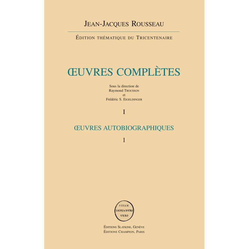 La magistrale édition de la Pléiade, dont le premier volume a paru en 1959, a été menée par les meilleurs spécialistes de l’époque. Cette édition 2012, sous la direction de deux rousseauistes parmi les plus éminents, Raymond Trousson et Frédéric S. Eigeldinger, adopte une orthographe modernisée, garantie de plus grande lisibilité. Destinée à la fois à l’honnête homme et aux spécialistes, elle s’articule sur la disposition thématique. Cette disposition a l’avantage d’offrir une lecture cohérente des ensembles, sans pour autant négliger la perspective chronologique, puisque chaque volume contient une chronologie détaillée et exhaustive des œuvres, selon la date de composition, ainsi que la date de première publication. Chaque volume est pourvu d’un index et les références renvoient aux volumes de la nouvelle édition. À côté des œuvres capitales, minutieusement revues sur les manuscrits et les éditions originales, en tenant compte des variantes significatives, une attention particulière a été portée aux minora, pour la première fois éclairées par des analyses approfondies, et à des ouvrages moins fréquentés par la critique, comme divers textes scientifiques ou les travaux de Rousseau sur la botanique, présentés dans leur intégralité, ou encore les importantes Institutions chimiques, sans oublier le Dictionnaire de musique, avec son appareil critique unique en son genre, comportant plus de 2500 notes des spécialistes les plus autorisés, Samuel Baud-Borgt, Amalia Collisani et Brenno Boccadoro.