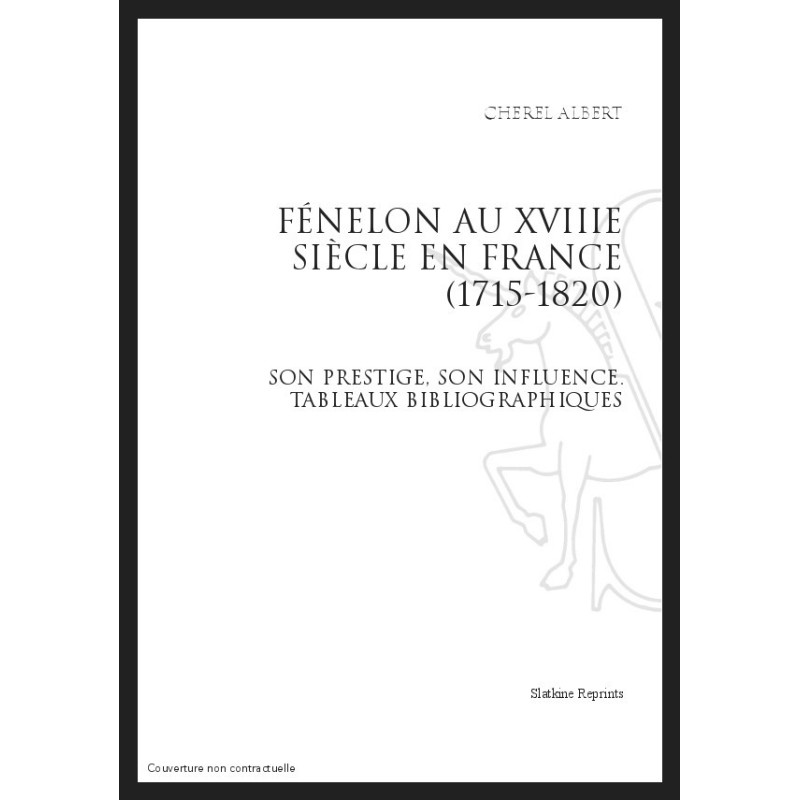FÉNELON AU XVIII SIÈCLE EN FRANCE (1715-1820) SON PRESTIGE, SON INFLUENCE TABLEAUX BIBLIOGRAPHIQUES