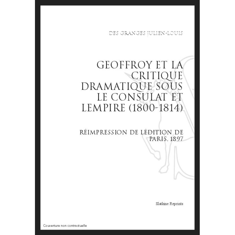 GEOFFROY ET LA CRITIQUE DRAMATIQUE SOUS LE CONSULAT ET L'EMPIRE (1800-1814)
