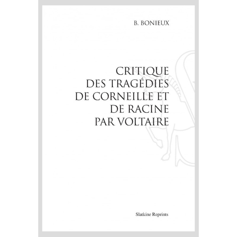 CRITIQUE DES TRAGÉDIES DE CORNEILLE ET DE RACINE PAR VOLTAIRE.