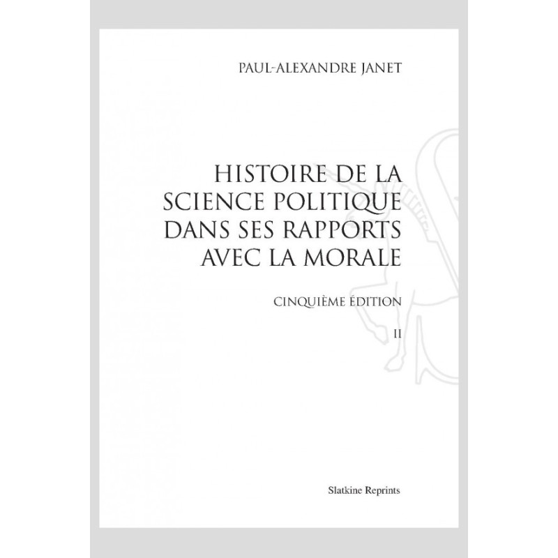 HISTOIRE DE LA SCIENCE POLITIQUE DANS SES RAPPORTS AVEC LA MORALE