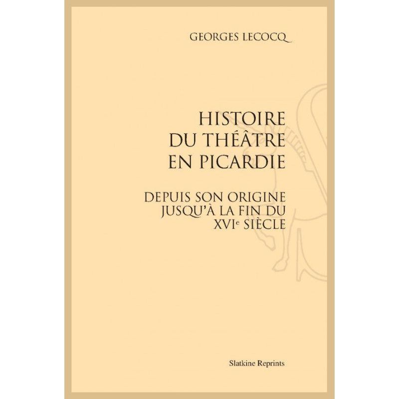 HISTOIRE DU THEATRE EN PICARDIE DEPUIS SON ORIGINE JUSQU'À LA FIN DU XVIE SIÈCLE