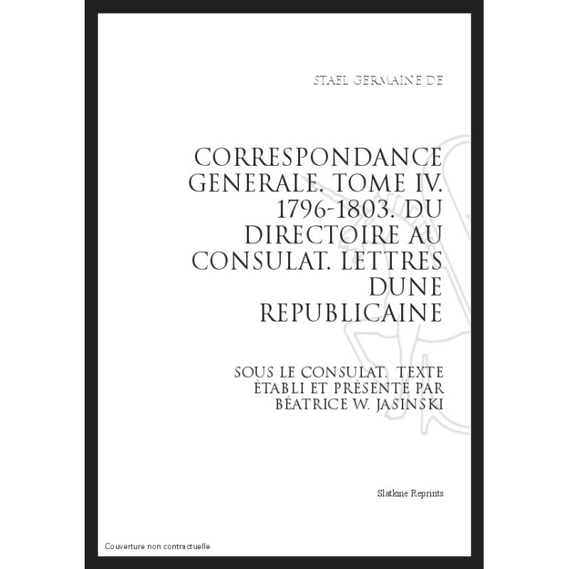 CORRESPONDANCE GENERALE T4 : DU DIRECTOIRE AU CONSULAT. LETTRES D'UNE REPUBLICAINE SOUS LE CONSULAT. 1796-180