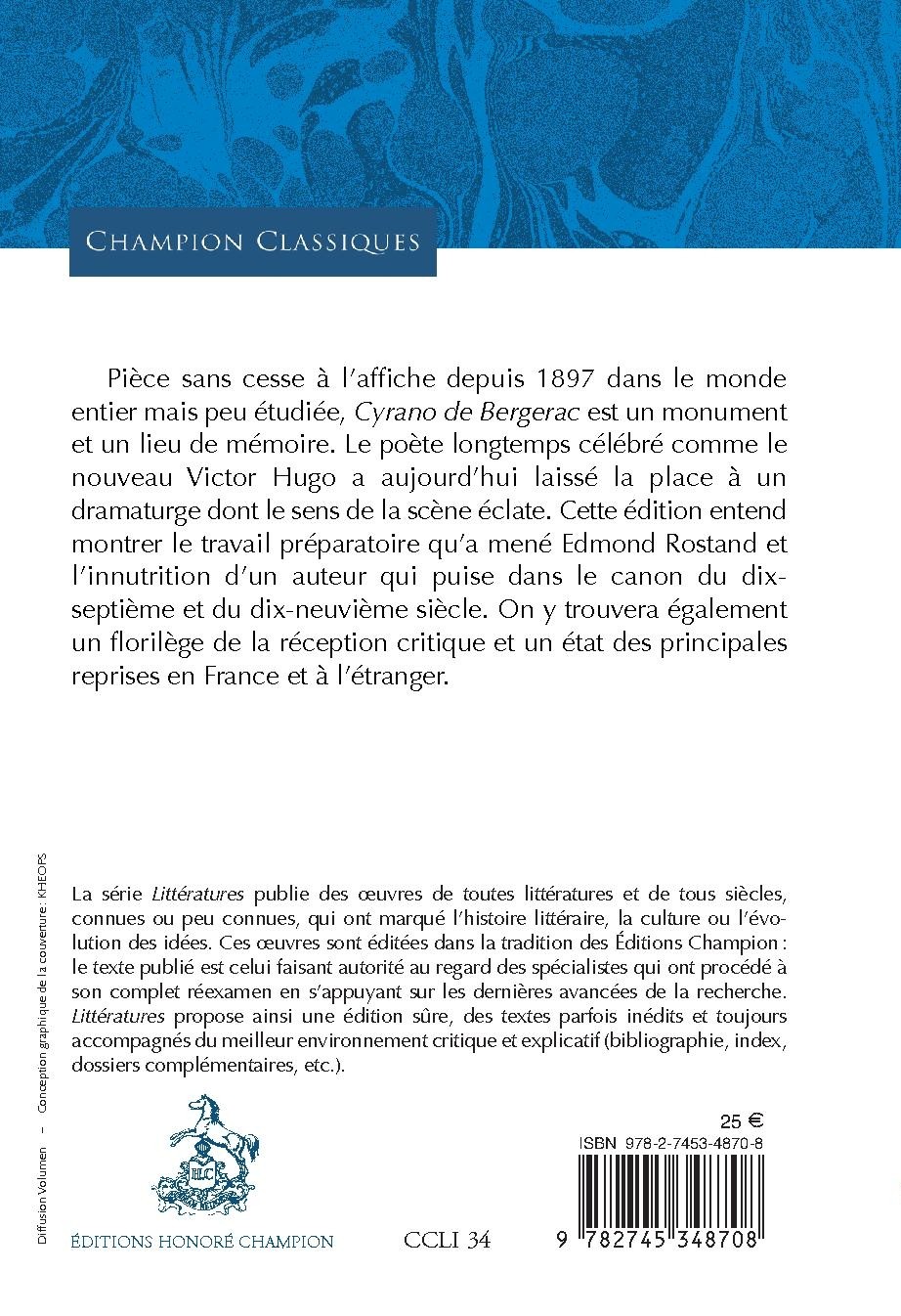 Pièce sans cesse à l’affiche depuis 1897 dans le monde entier mais peu étudiée, Cyrano de Bergerac est un monument et un lieu de mémoire. Le poète longtemps célébré comme le nouveau Victor Hugo a aujourd’hui laissé la place à un dramaturge dont le sens de la scène éclate. Cette édition entend montrer le travail préparatoire qu’a mené Edmond Rostand et l’innutrition d’un auteur qui puise dans le canon du dix-septième et du dix-neuvième siècle. On y trouvera également un florilège de la réception critique et un état des principales reprises en France et à l’étranger.