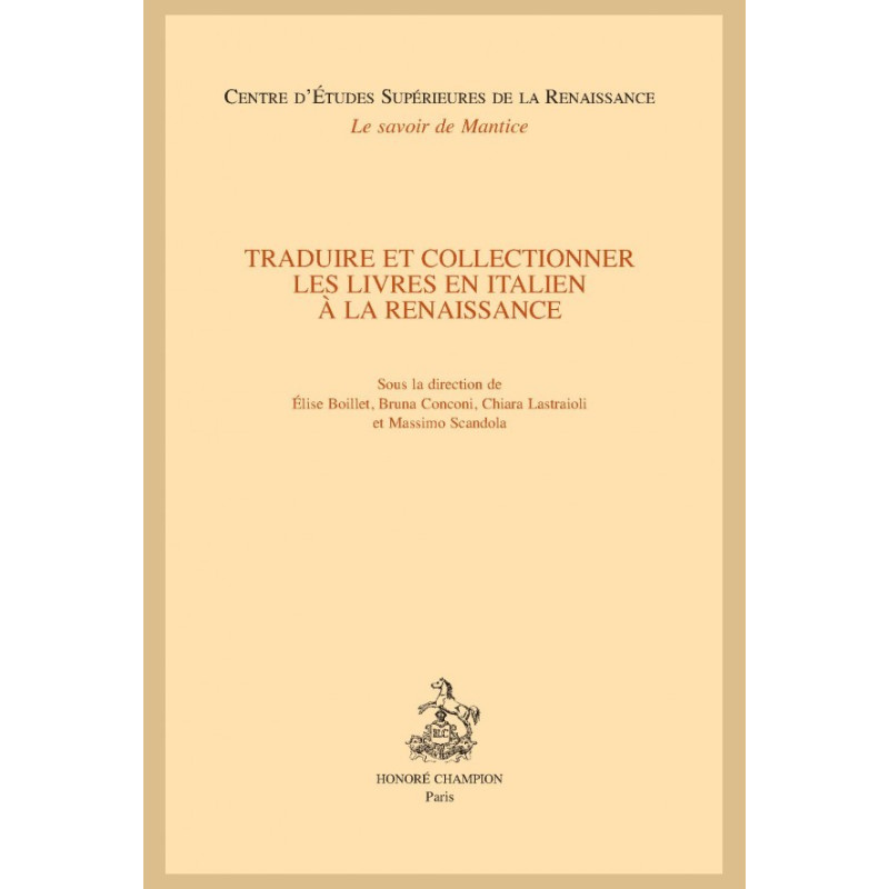 Les études recueillies dans ce volume sont le fruit des recherches conjointes de plusieurs spécialistes ayant participé, pendant quatre ans, au projet L’Édition italienne dans l’espace francophone à la première modernité (EDITEF - ANR-13-BSH3-0010-01). Elles portent essentiellement sur la question de la professionnalisation des traducteurs de l’italien vers le français à la Renaissance et sur l’impact de leur production sur la divulgation des savoirs élaborés dans la Péninsule. Une partie de ces essais concerne la question de l’étude du collectionnisme libraire de l’Ancien Régime, offrant des approches méthodologiques diverses et complémentaires à la fois.