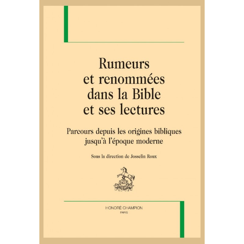 Dans les sociétés antiques, les rumeurs et renommées revêtent une importance capitale. À une époque où l’usage de l’écrit reste peu répandu, le « bouche-à-oreille » constitue en effet le principal « média » disponible. Cet ouvrage est le premier à proposer une série d’études approfondies sur les rumeurs et renommées dans la Bible, et dans le contexte de ses réceptions les plus immédiates, à savoir dans les littératures juives et chrétiennes antiques. L’attention portée aux bruits publics offre un nouvel éclairage sur ces textes et sur leurs différents milieux de production. En retour, le traitement de la rumeur et de la renommée dans cette littérature reflète d’autres façons de penser la communication, l’information, l’autorité, la vérité. En cela, qui plus est à l’heure des « fake news », ces textes interrogent nos propres façons de penser et nos usages dans le cadre de sociétés contemporaines « hyper-médiatiques ».