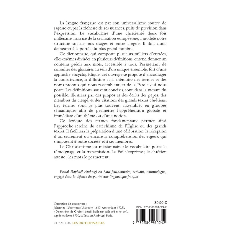 Ce lexique des termes fondamentaux permet ainsi l’approche sereine du catéchisme de l’Église ou des grands textes. Il facilitera la préparation d’une célébration, la réception d’un sacrement ou encore la compréhension des enjeux qui s’imposent à notre société et à ses membres.