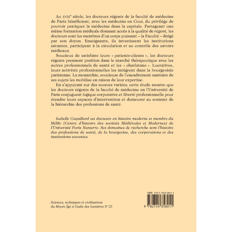Au XVIIIe siècle, les docteurs régents de la faculté de médecine de Paris bénéficient, avec les médecins en Cour, du privilège de pouvoir pratiquer la médecine dans la capitale. Partageant une même formation médicale donnant accès à la qualité de régent, les docteurs sont les membres d’un corps puissant – la Faculté – dirigé par son doyen. Enseignants, ils investissent les institutions savantes, participent à la circulation et au contrôle des savoirs médicaux.
