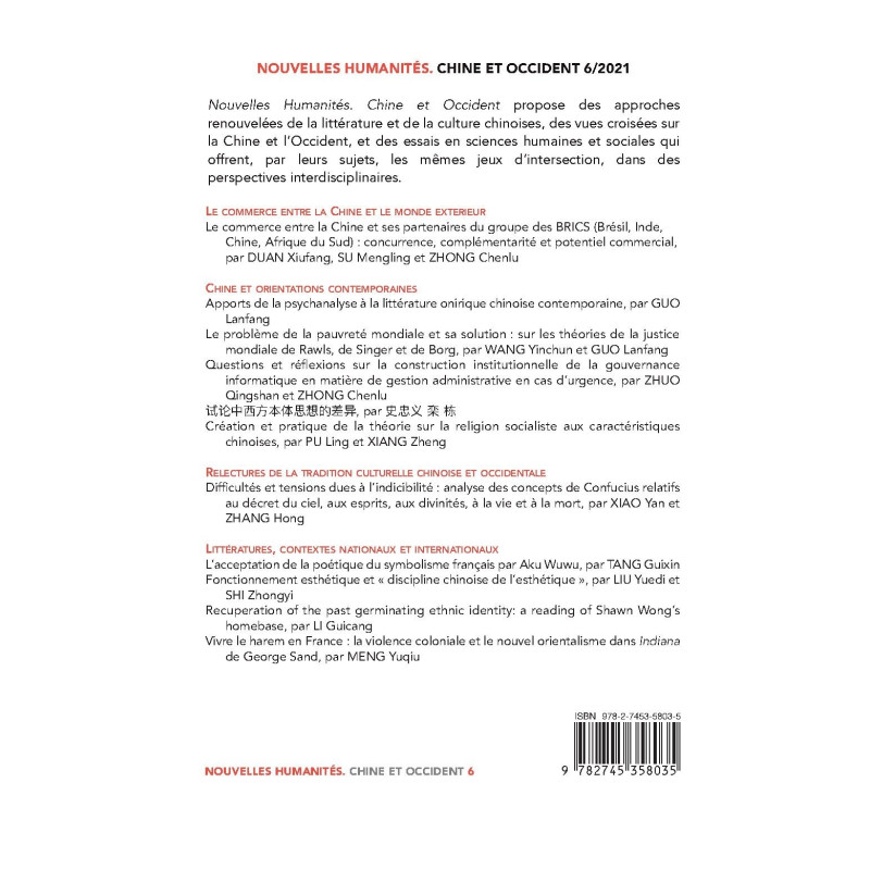 NOUVELLES HUMANITÉS. CHINE ET OCCIDENT 6/2021