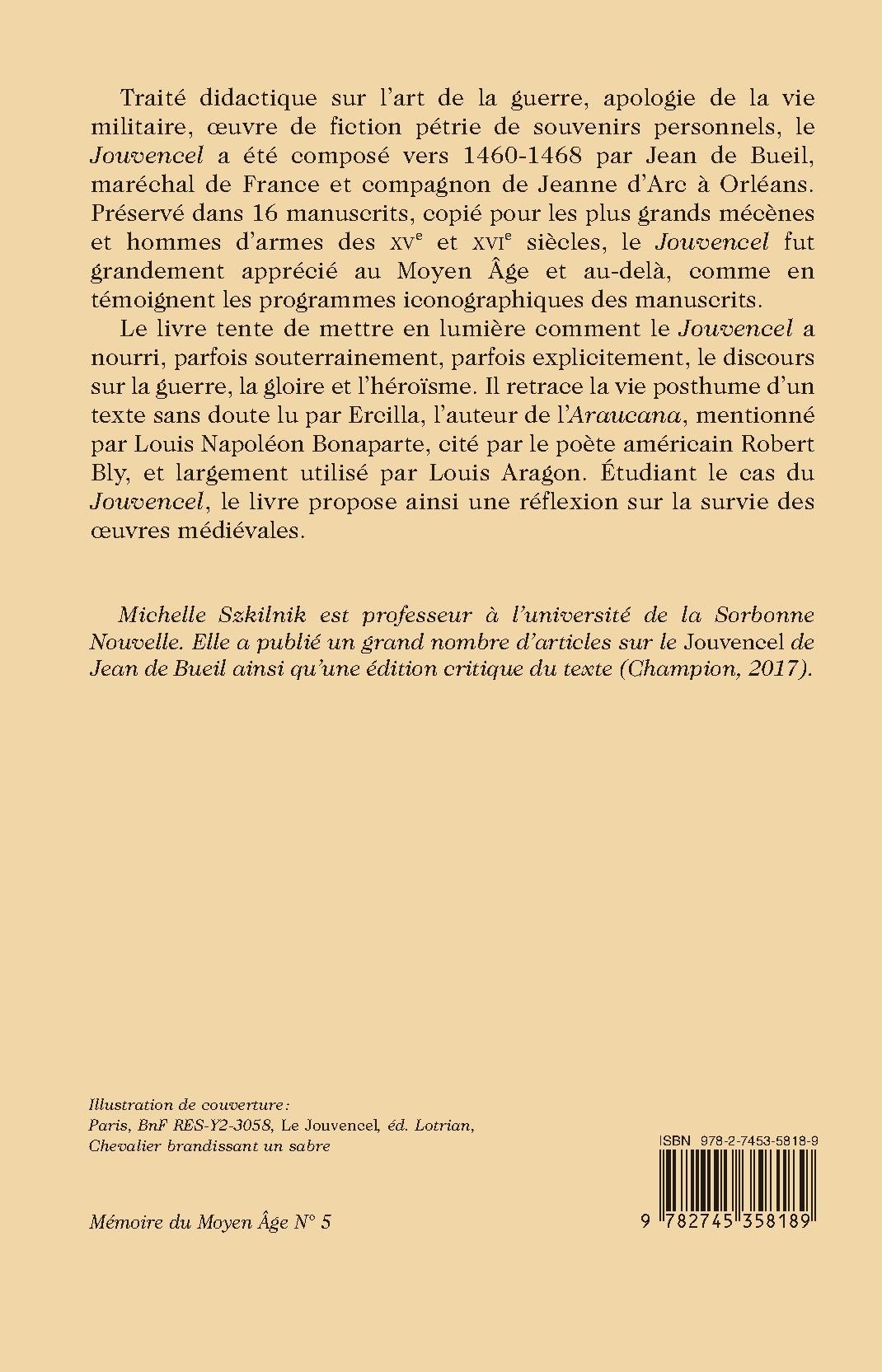 Michelle Szkilnik est professeur à l’université de la Sorbonne Nouvelle. Elle a publié un grand nombre d’articles sur le Jouvencel de Jean de Bueil ainsi qu’une édition critique du texte (Champion, 2017).