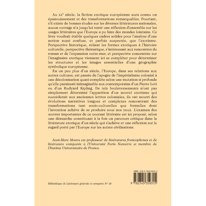 En un peu plus d’un siècle, l’Europe, dans ses relations aux autres cultures, est passée de l’apogée de l’impérialisme colonial à une décolonisation quasi-complète selon une mutation si profonde qu’elle paraissait inimaginable aux contemporains d’un Pierre Loti ou d’un Rudyard Kipling. De tels bouleversements n’ont pas simplement déterminé l’apparition d’un nouvel exotisme qui succéderait aux anciennes lettres coloniales, ils ont nourri des évolutions narratives longues et complexes rencontrant des transformations tant socio-culturelles que formelles dont l’invention achève de se produire sous nos yeux. L’examen des œuvres importantes de ce courant littéraire est ici proposé, selon une démarche constituant à la fois un parcours critique dans la littérature exotique d’un siècle qui s’achève et une réflexion sur le regard porté par l’Europe sur les autres civilisations.