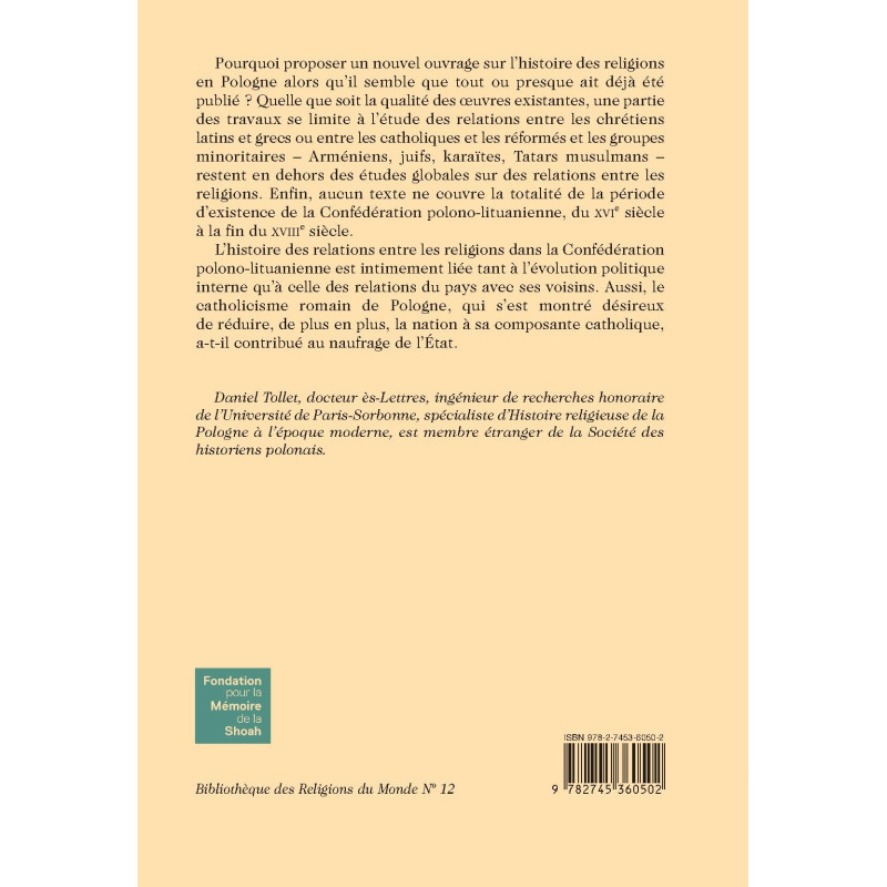 Pourquoi proposer un nouvel ouvrage sur l’histoire des religions en Pologne alors qu’il semble que tout ou presque ait déjà été publié ? Quelle que soit la qualité des œuvres existantes, une partie des travaux se limite à l’étude des relations entre les chrétiens latins et grecs ou entre les catholiques et les réformés et les groupes minoritaires – Arméniens, juifs, karaïtes, Tatars musulmans – restent en dehors des études globales sur des relations entre les religions. Enfin, aucun texte ne couvre la totalité de la période d’existence de la Confédération polono-lituanienne, du XVIe siècle à la fin du XVIIIe siècle.
