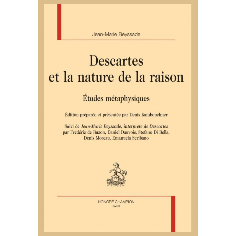 Ce recueil, édité et présenté par Denis Kambouchner, est assorti de cinq contributions formant un hommage scientifique d’élèves et d’amis au grand maître qu’a été J.-M. Beyssade. Dans des styles et sur des objets différents, elles détaillent sa méthode d’analyse des textes cartésiens, éclairant ainsi la portée de son enseignement.