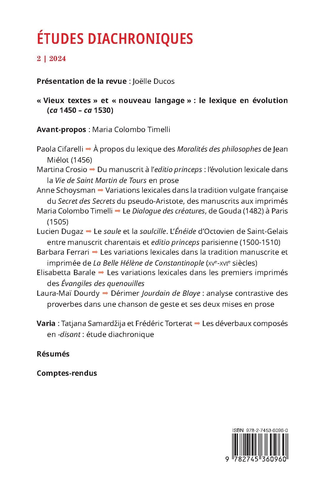 Elisabetta Barale : Les variations lexicales dans les premiers imprimés des Évangiles des quenouilles