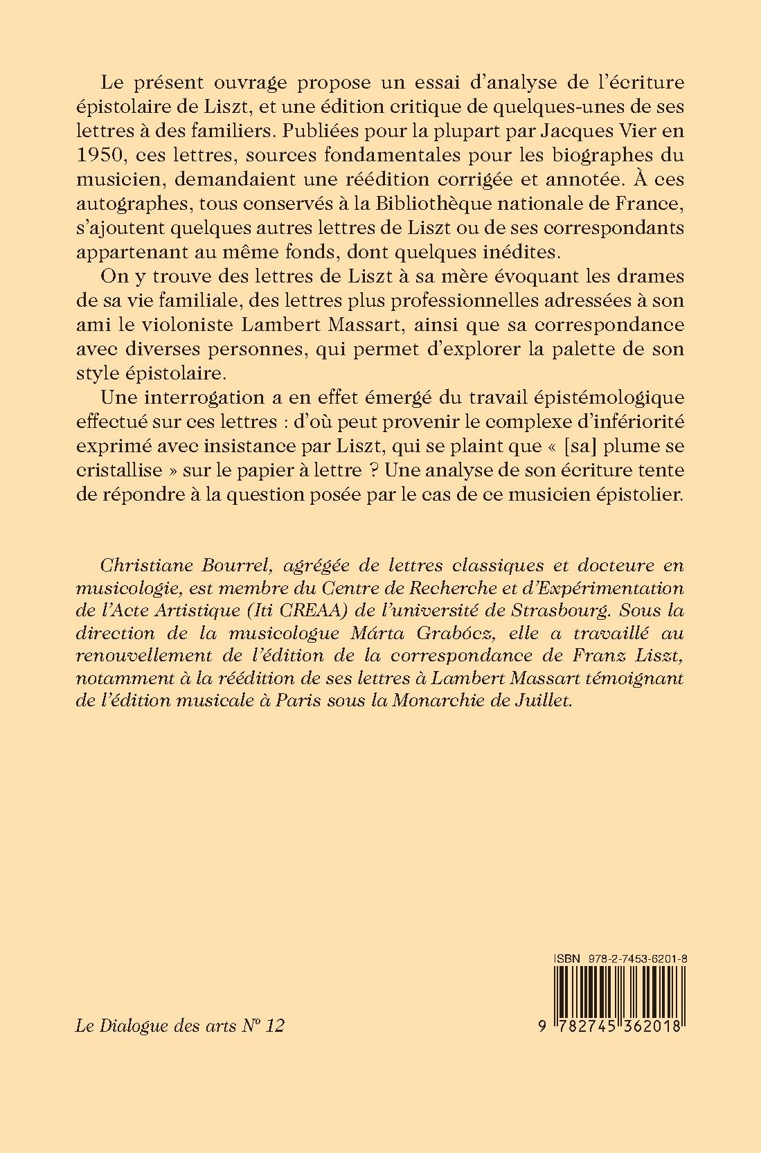 Le présent ouvrage propose un essai d’analyse de l’écriture épistolaire de Liszt, et une édition critique de quelques-unes de ses lettres à des familiers. Publiées pour la plupart par Jacques Vier en 1950, ces lettres, sources fondamentales pour les biographes du musicien, demandaient une réédition corrigée et annotée. À ces autographes, tous conservés à la Bibliothèque nationale de France, s’ajoutent quelques autres lettres de Liszt ou de ses correspondants appartenant au même fonds, dont quelques inédites.