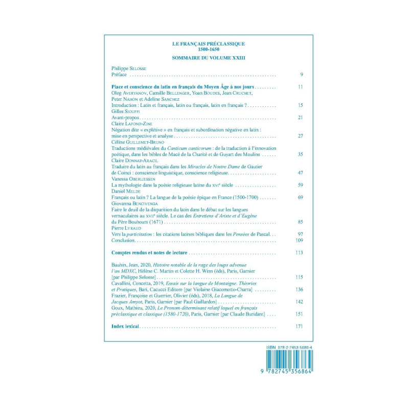 | Collection | LE FRANCAIS PRECLASSIQUE |
