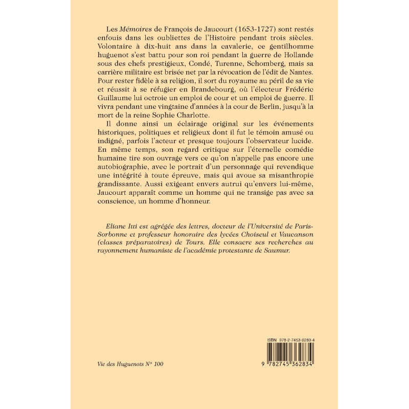 Les Mémoires de François de Jaucourt (1653-1727) sont restés enfouis dans les oubliettes de l’Histoire pendant trois siècles. Volontaire à dix-huit ans dans la cavalerie, ce gentilhomme huguenot s’est battu pour son roi pendant la guerre de Hollande sous des chefs prestigieux, Condé, Turenne, Schomberg, mais sa carrière militaire est brisée net par la révocation de l’édit de Nantes. Pour rester fidèle à sa religion, il sort du royaume au péril de sa vie et réussit à se réfugier en Brandebourg, où l’électeur Frédéric Guillaume lui octroie un emploi de cour et un emploi de guerre.