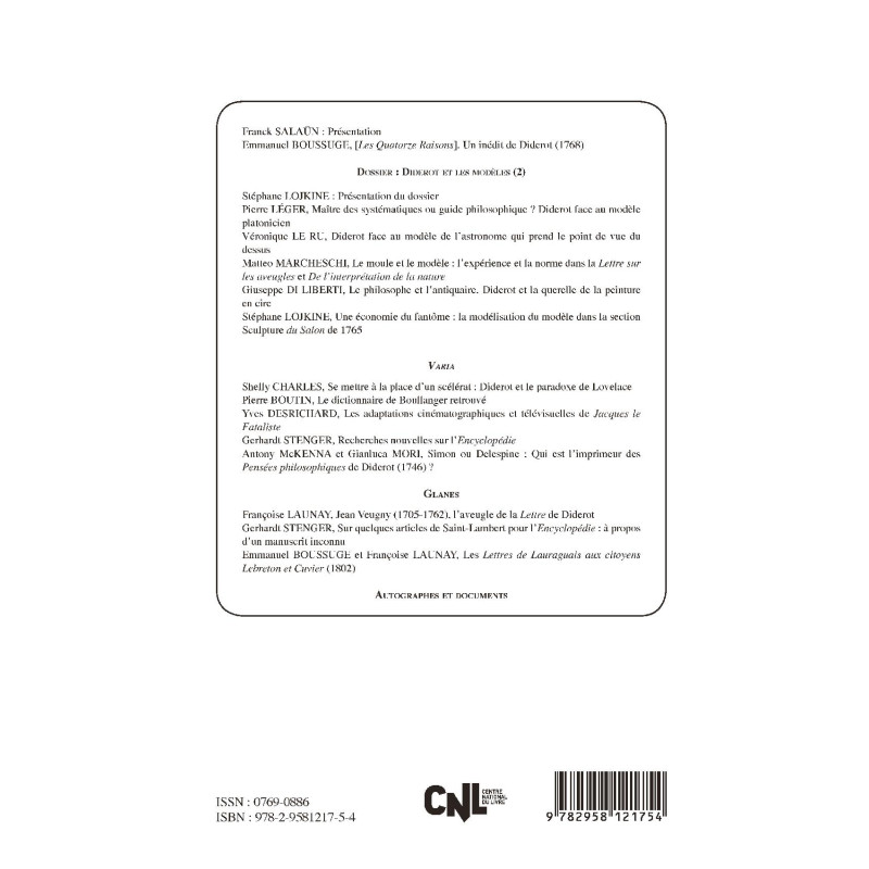 | Collection | RECHERCHES SUR DIDEROT ET L ENCYCLOPEDIE |