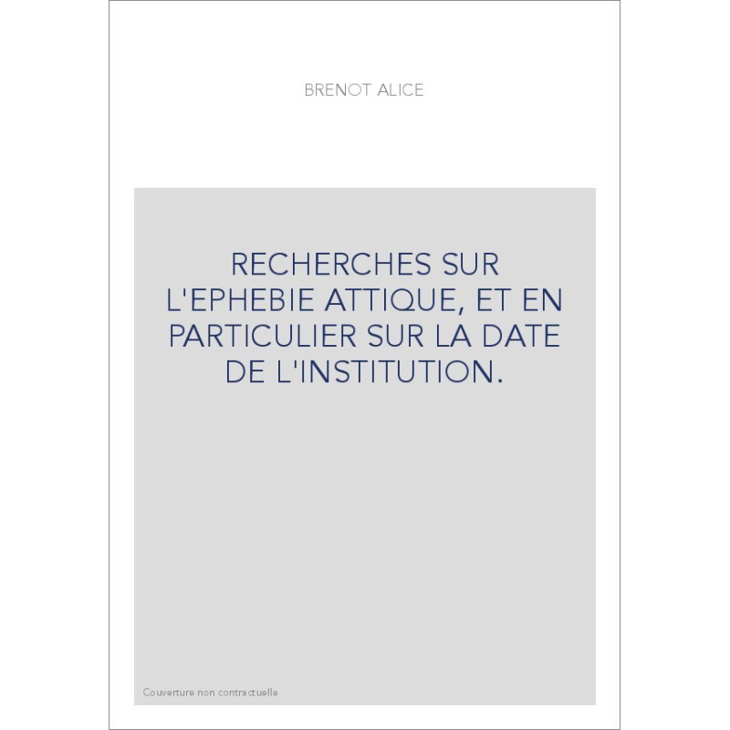 RECHERCHES SUR L'EPHEBIE ATTIQUE, ET EN PARTICULIER SUR LA DATE DE L'INSTITUTION.