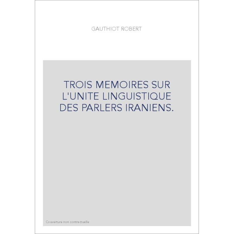 TROIS MEMOIRES SUR L'UNITE LINGUISTIQUE DES PARLERS IRANIENS.